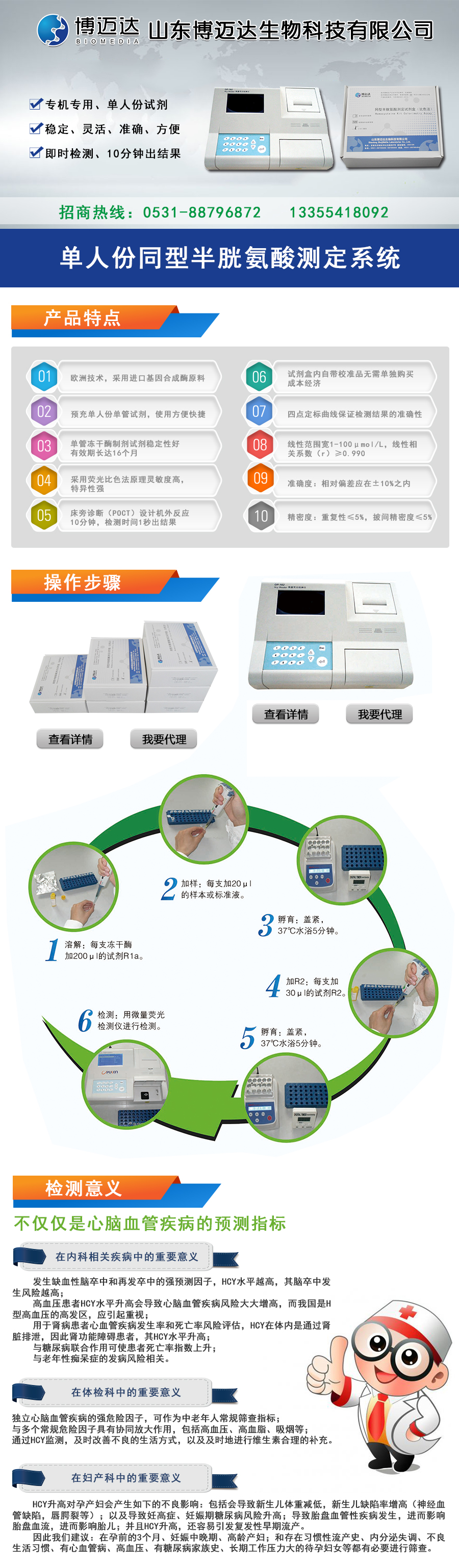 博邁達自主研發(fā)產(chǎn)品同型半胱氨酸檢測試劑盒(熒光法)市場占有率逐步上升,東北三省和西南五省省火熱招商中
