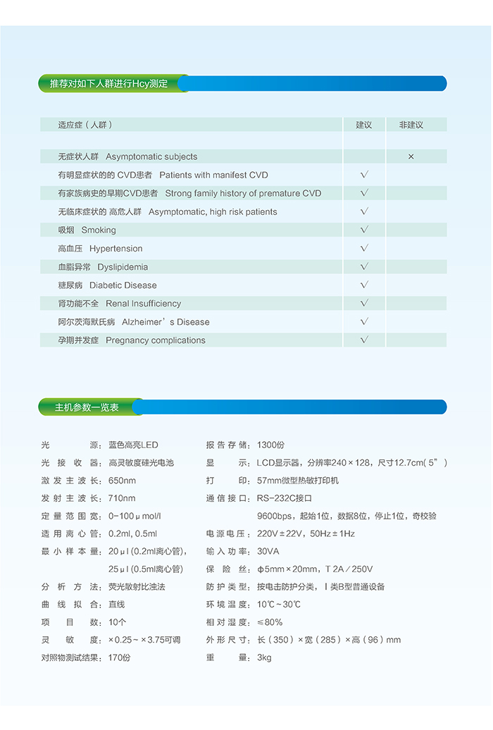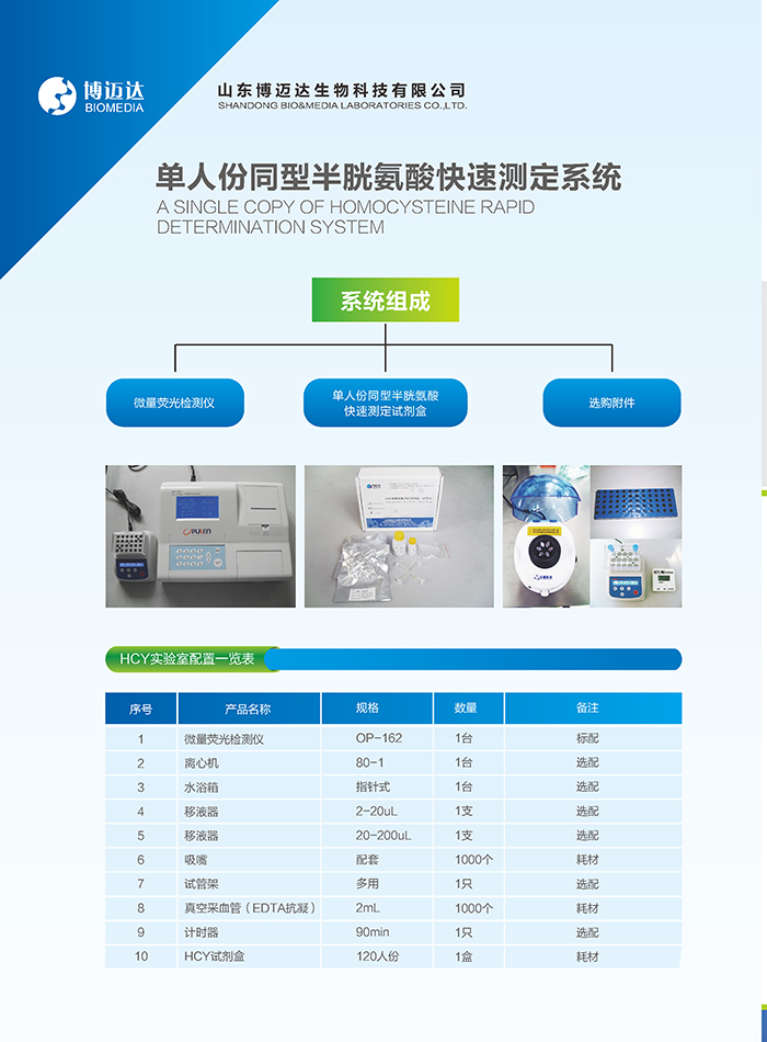 [試劑]單人份同型半胱氨酸(HCY)快速檢測試劑盒