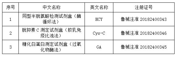 2018年8月13日,我公司的三個體外診斷試劑產(chǎn)品順利取得由山東省食品藥品監(jiān)督管理局頒發(fā)的醫(yī)療器械注冊證,分別是同型半胱氨酸檢測試劑盒(酶循環(huán)法)、胱抑素C測定試劑盒(膠乳免疫比濁法)和糖化白蛋白測定試劑盒(過氧化物酶法)。