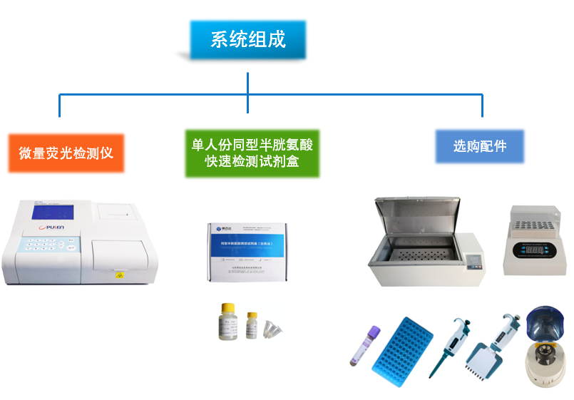 本試劑盒使用酶轉(zhuǎn)換法定量測(cè)定血漿中同型半胱氨酸的總濃度。首先以還原劑將氧化態(tài)的同型半胱氨酸還原,再以基因重組酶將同型半胱氨酸分解�;蛑亟M酶分解所形成的產(chǎn)物與顯色劑反應(yīng)后之產(chǎn)物可于660nm波長(zhǎng)激發(fā)下發(fā)射出710nm波長(zhǎng)熒光,測(cè)定其反應(yīng)前后熒光度的差,即可計(jì)算出樣本中同型半胱氨酸的含量。